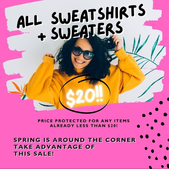 ALL Sweatshirts & Sweaters are $20 (for limited time) Price protected for pieces ALREADY LOWER than $20 πŸ’• Happy Shopping xo