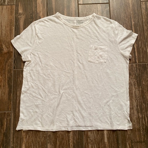 This shirt is a white old navy t-shirt and has nothing on it but a pocket on the right side! It have no stains, rips or tears in it! It have a cuts on both sides (how it came from the store!) Would look cute with anything!π€