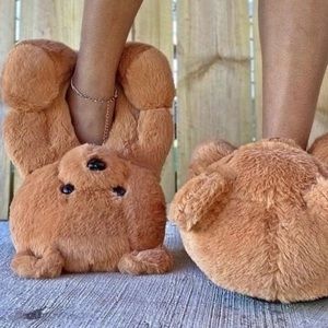 【Plush Slipper Shoes】 Soft plush faux fur upper with cute bear design perfect for girls or ladies who love fancy slides and warm feeling.