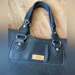 black pebbled faux leather with gold hardware, perfect for your accessory wardrobe!