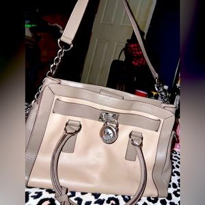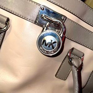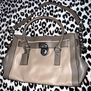 authentic genuine michael kors leather designer boujee y2k 00s baddie hand bag pocketbook purse grey gray fashion fashionista chains lock and key handles zippers pockets rich girl