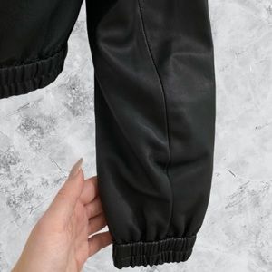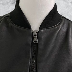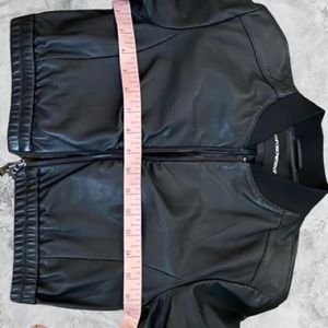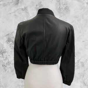 -Bomber-style jacket collar with 3/4 length sleeve.