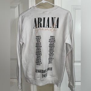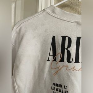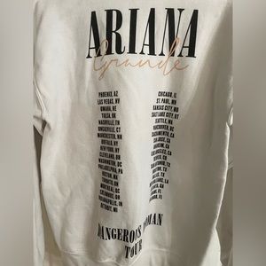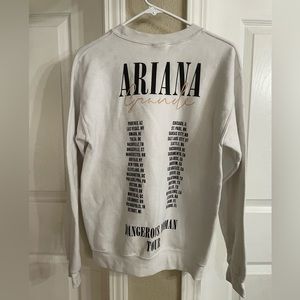 Sweatshirt from Ariana Grande's Dangerous Woman world tour from March 2017. Condition of sweatshirt would be an 9, In my opinion but you may take it to a dry cleaners. See photos. Last 2 photos were taken with flash to show true color of the item with & without flash πΈ.