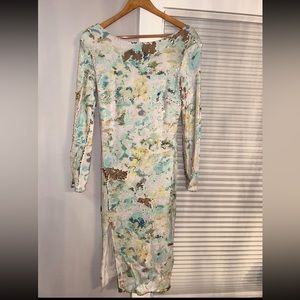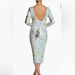 Reversible sequins call attention to a showstopping dress in a figure-skimming body-con silhouette designed with a flirty thigh-high slit at the hem