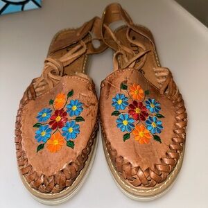 Size 9. Authentic Huaraches from Mexico. Leg tie up laces. Super comfy. Brand new never worn.