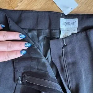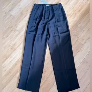 Black Pleated Slacks, hook and zipper closer, wide leg.