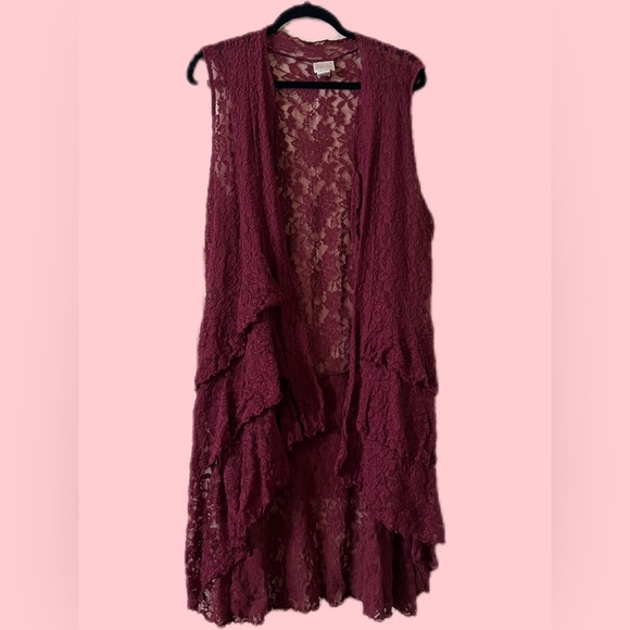 Elegant lace vest. Sleeveless design. Perfect for layering.