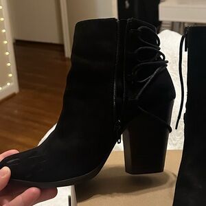 Chic black boots with stylish laces. Perfect for elevating any outfit. Comfortable and trendy.