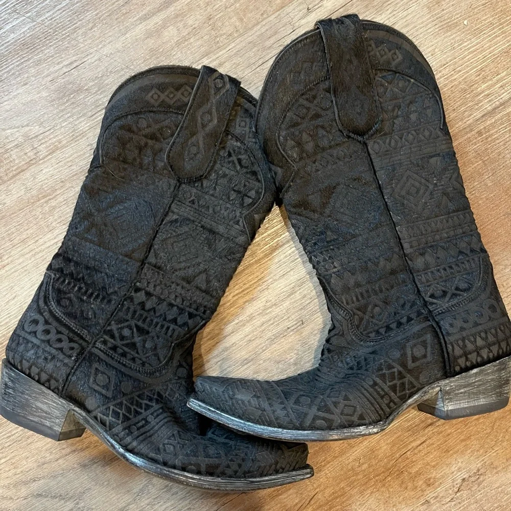 Step out in style with these black laser western boots. Perfect for adding a touch of elegance to any outfit.