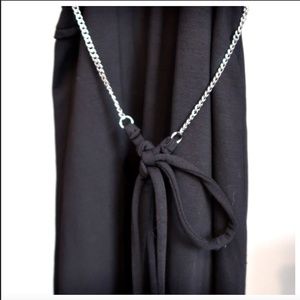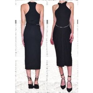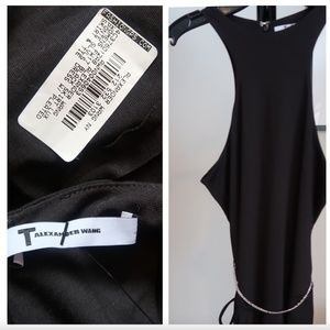 T Alexander Wang Women Silver Chain Belt Black Dress Lux Ponte Stretch Midi