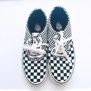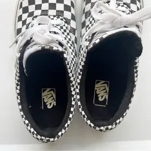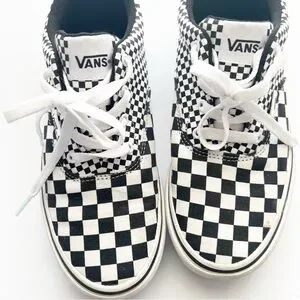 Stylish Vans with iconic checkerboard design. Features white laces and durable rubber soles.