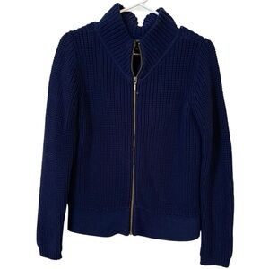 Keep your child cozy and stylish with this navy blue knit jacket. Perfect for layering during cooler days.
