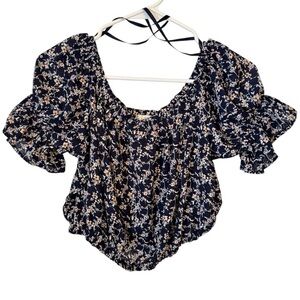 Elevate your style with this chic floral puff sleeve top. Perfect for any occasion, this navy blue top adds a touch of elegance to your wardrobe.