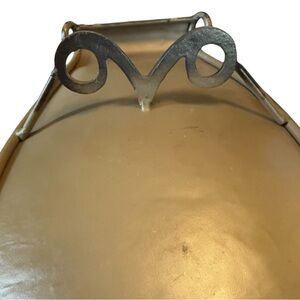 Sleek gold metal tray with curved design. Perfect for decor or serving. ๐๐ซ๐๐ญ๐ญ๐ฒ ๐ฎ๐ฌ๐๐ ๐๐จ๐ซ ๐ ๐๐๐ง๐ญ๐๐ซ ๐ฉ๐ข๐๐๐