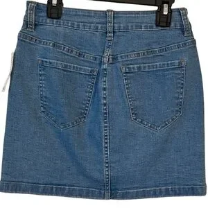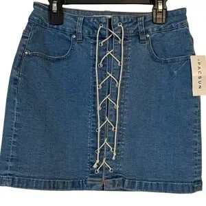 Chic denim skirt with lace-up front. Perfect for casual outings. Stylish and trendy.