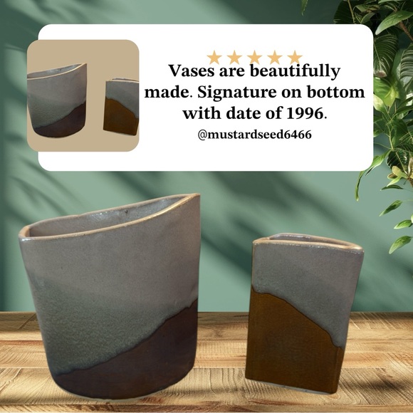 Enhance your home with this elegant two-tone ceramic vase set. The subtle gray and brown hues add a touch of sophistication to any decor.