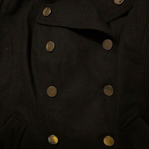 Chic black pea coat with double-breasted design. Features stylish buttons and classic lapels. ๐ ๐ฌ๐ข๐ฅ๐ฏ๐๐ซ ๐๐ฎ๐ญ๐ญ๐จ๐ง๐ฌ- ๐๐จ๐ฅ๐ฅ๐๐ซ ๐๐ฎ๐ญ๐ญ๐จ๐ง๐ฌ ๐๐จ๐ฐ๐ง ๐๐๐๐ฎ๐ญ๐ข๐๐ฎ๐ฅ ๐ฉ๐๐๐๐จ๐๐ญ