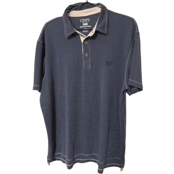 Classic navy polo by Chaps. Perfect for casual outings. Soft and stylish.