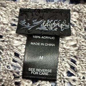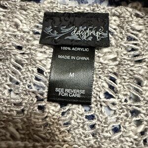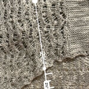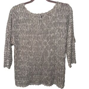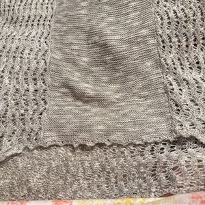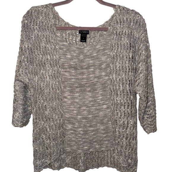 Chic metallic knit cardigan. Open front design. Ideal for layering.