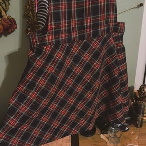 Y2K skater punk plaid overall pinafore dress xx. Features a classic red and black checkered pattern, Iβve used with black tops and Demonias π€π€