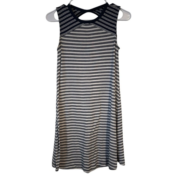 Chic and comfortable, this sleeveless dress features a classic black and white stripe pattern. Perfect for any occasion, it offers a stylish and versatile look.