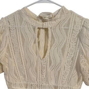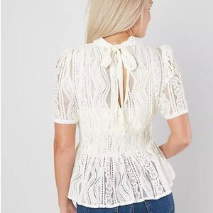 This elegant white lace top is perfect for any occasion. Its intricate design adds a touch of sophistication to your wardrobe.