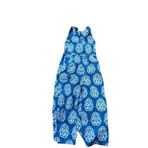 Boden Blue White Floral Print Jumpsuit Romper Kids Size 9 10 Years Playful Preppy Classic