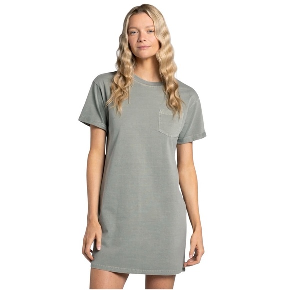Stylish gr๐๐ฒ t-shirt dress with a front pocket. Perfect for casual outings.