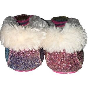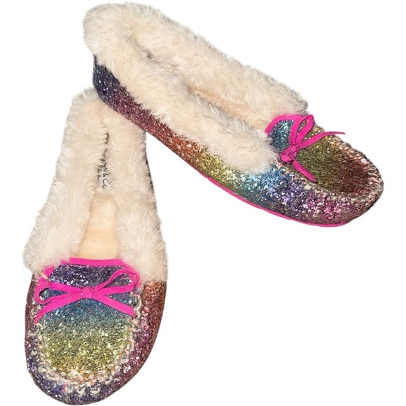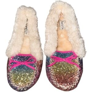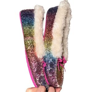 Step into comfort with these vibrant sequin slippers. Featuring a rainbow of colors and a plush lining, these slippers are perfect for cozy days at home.