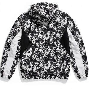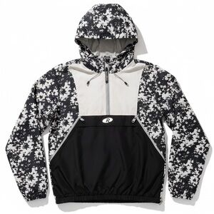 Stylish black and white hooded jacket with a unique pattern. Features a front zipper and logo detail. ๐๐-๐๐ข๐ค๐ ๐ง๐๐ฐ