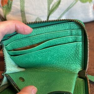 WATER BUFFALO LEATHER WALLET CARD CASE ZIP AROUND EXOTIC GREEN’ish