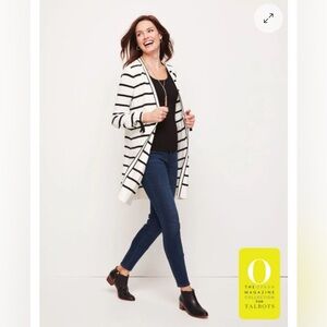Elegant black and white striped sweater perfect for any occasion. Stay stylish and comfortable with this versatile piece.