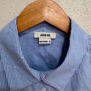 Jason Wu Blue Striped Embellished Rhinestone