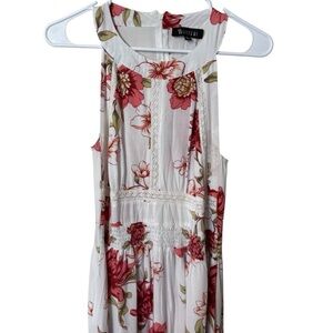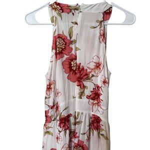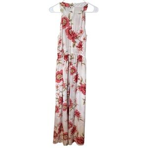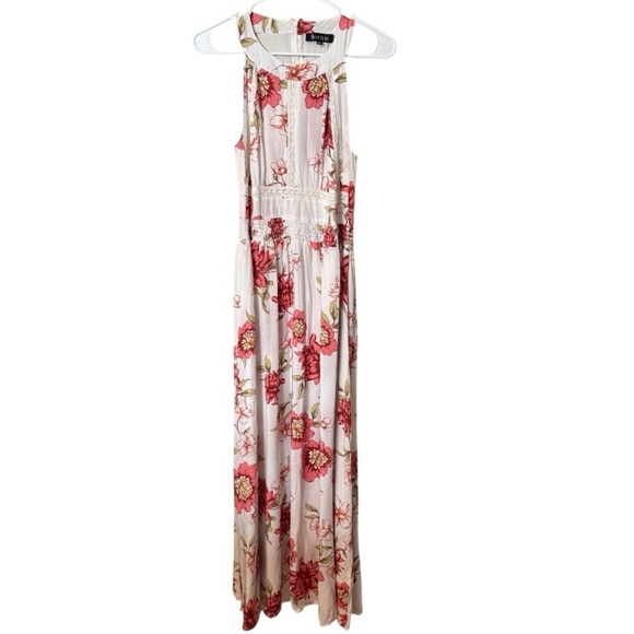 Chic maxi dress with vibrant floral pattern. Sleeveless design. Ideal for warm weather.