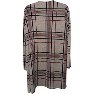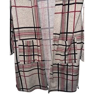 Stay stylish and cozy with this plaid open front cardigan sweater. Perfect for layering, this sweater features a classic plaid design in cream and black. Ideal for any casual outing.