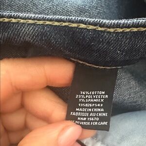 Classic dark wash jeans with subtle fading and whiskering on the front. Comfortable stretch fabric makes them easy to wear all day.