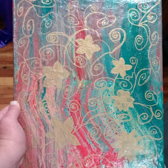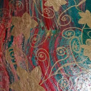 The gold, red and green go well together. It reminds me of Christmas actually. But it doesn't have to be a seasonal painting... just my opinion of it.