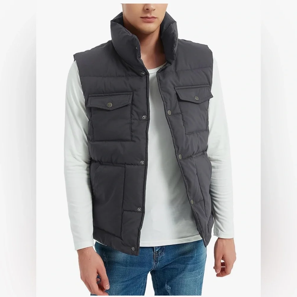 Elevate your wardrobe with this sleek charcoal puffer vest. Ideal for layering, it combines style and warmth effortlessly.