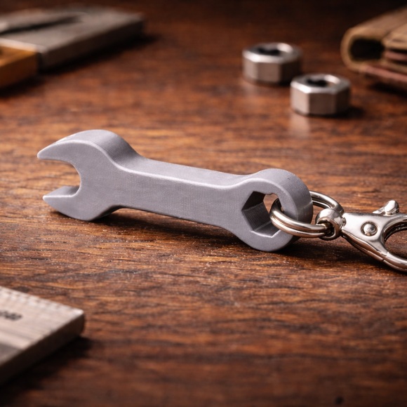 3D printed wrench/spanner inspired keychain. With a hex styled opening for the key ring to pass through. Lightweight, durable, and perfect for everyday carry.