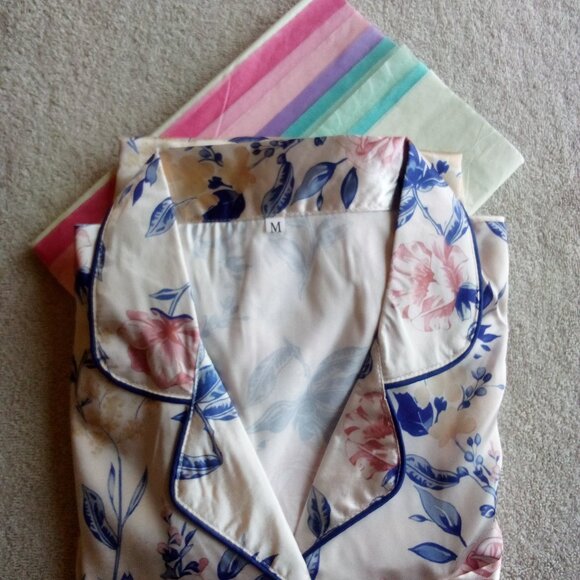 エレガントな花柄プリントのレディースパジャマセット - キュートなラペルカラー、半袖、オールシーズン対応