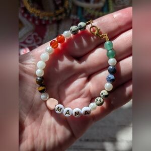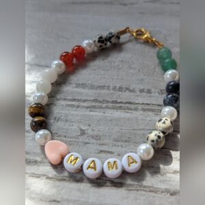 This has natural stone beads and faux pearl beads as spacers.