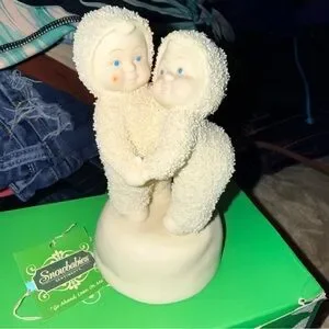 Charming figurine featuring two children in textured cream outfits. Perfect for collectors.