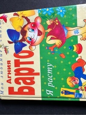 Cute illustrated children’s book in Russian featuring classic poems by Agniya Barto. Bright, colorful illustrations throughout.