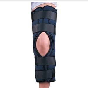 Universal knee brace in black and gray. Ideal for ACL, MCL, and meniscus support.