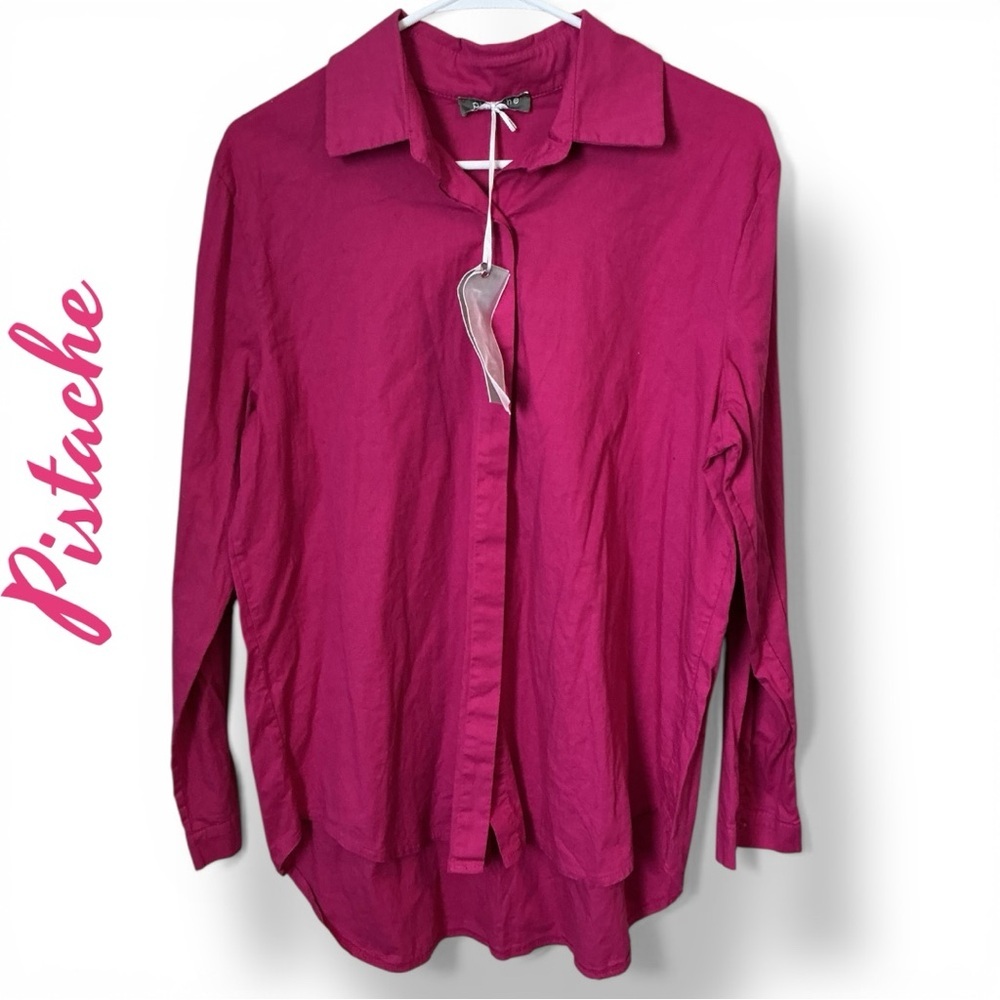 Elevate your wardrobe with this vibrant pink button-up shirt. Perfect for any occasion, this top offers both style and comfort.