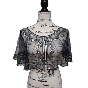✨ Sequin Mesh Evening Party Retro Flapper 1920s Shawl Wrap Cover Up Cape NEW