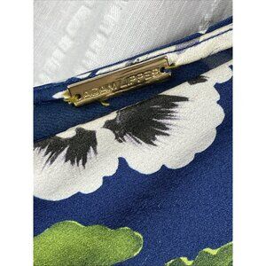 0 Adam Lippes Blue Floral Silk Dress Asian Lotus Print