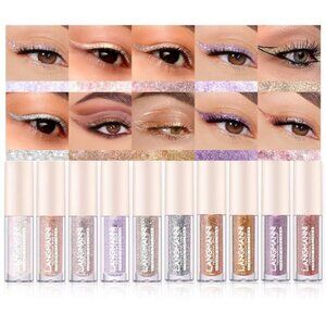 🧿【Dual-use Set】Our versatile collection offers 10 shimmering colors that can be used as liquid glitter eyeliners and eyeshadows for endless makeup possibilities.