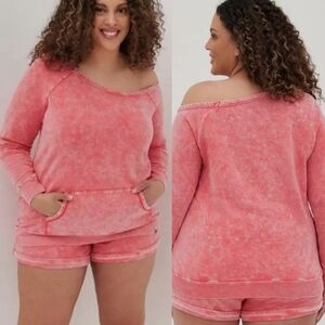 {0} Torrid Off Shoulder Sweatshirt Paradise Pink