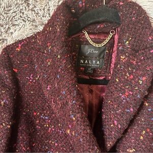 Like new, no flaws. Size 0 petite maroon wool blend coat with multicolor details.